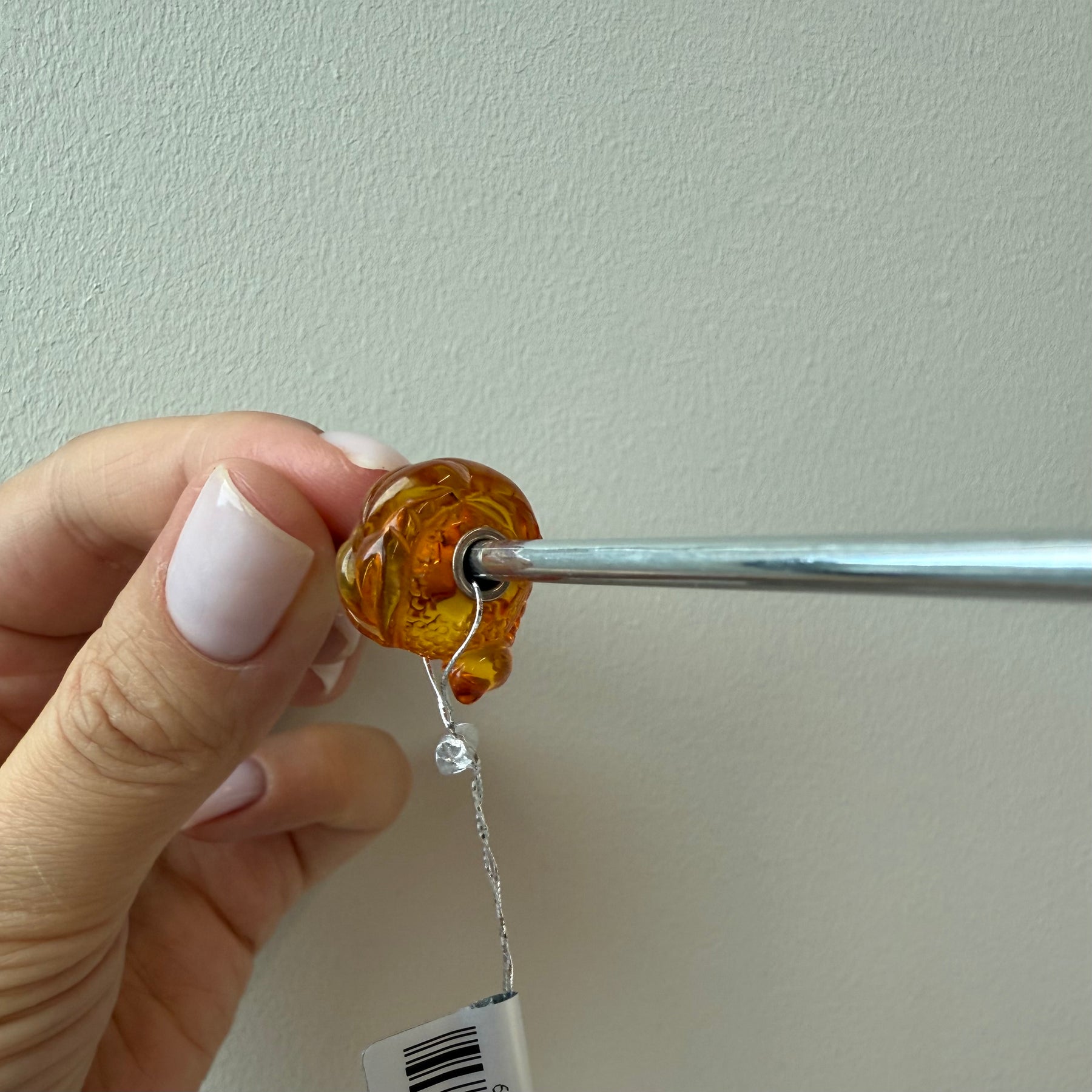 Gintarinio karoliuko viduje įstatyta 925 prabos sidabro šerdelė.